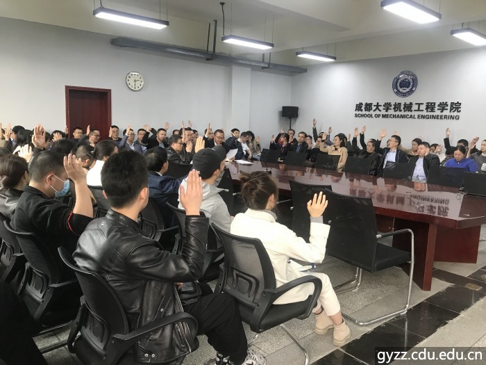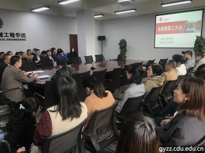 在M301会议室召开全院教职工大会,会议由冯威副院长主持。
