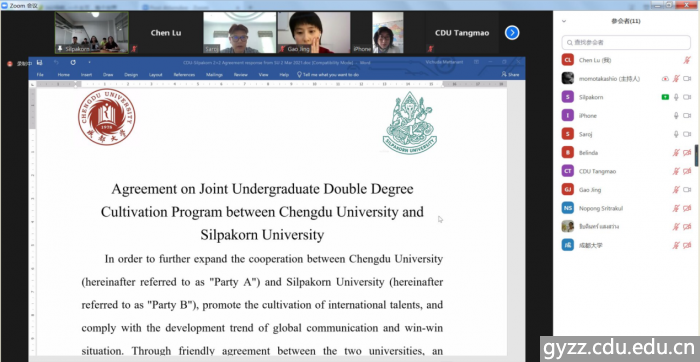 会上,泰国艺术大学校长助理Saroj Pullteap教授和工程与工业技术学院院长Arunsri Leejeerajumnean教授对双方前期课程匹配的工作进行了总结和肯定,双方项目团队成员就合作协议中涉及到的各项费用、奖学金标准、英语考试要求、学生签证、双方权益等具体问题进行了详细的讨论和磋商,形成了协议的最终版本。该协议递交至双方所在的国合处、教务处和法务部门进行核准和审批后,将进入签约和招生宣传环节,该项目预计今年9月份进行招生和开班。