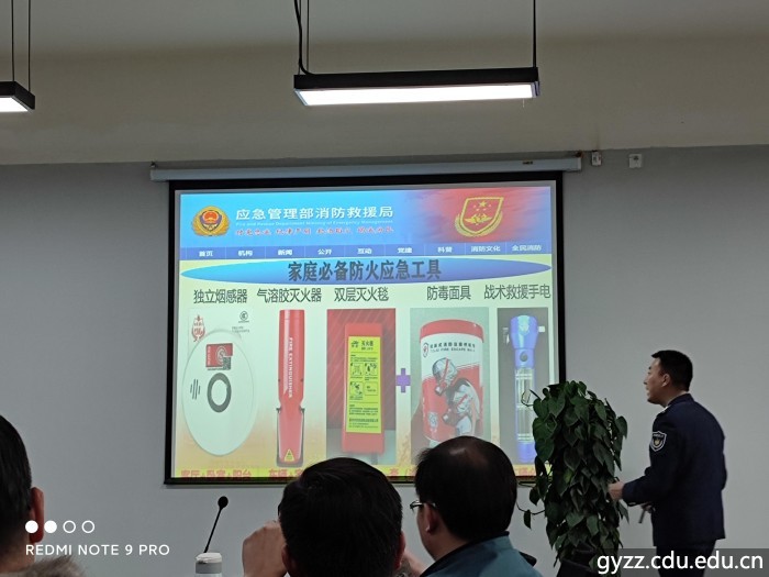 成都市利民消防宣传中心的教官为学院师生普及消防安全知识。就“防火”“灭火”“逃生”“自救”等几个方面讲解了如何预防火灾,如何查找火灾隐患,发生火灾时如何正确报警,火场如何逃生自救,如何组织人员疏散,日常生活工作学习中如何安全用火、用电、用气等基本消防知识。