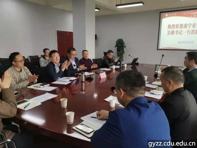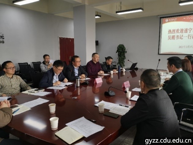 的发展历程与学科专业建设情况,期待校企双方深化合作模式,在科技平台建设、成果奖申报、学生就业等领域全面加强合作。吴刚主任及人社局各部门负责人也分别对遂宁市、安居区的区位优势、产业优势及高层次人才引进需求、企业分布情况等进行了介绍,表示安居区政府各部门将为校企合作提供优良的制度保障与服务。四川裕能新能源电池材料有限公司人力资源部负责人王雪梅介绍了裕能集团的大体情况及对专业性、研发性人才的需求状况,提出校企双方可在学生实习与就业方面进行密切合作。