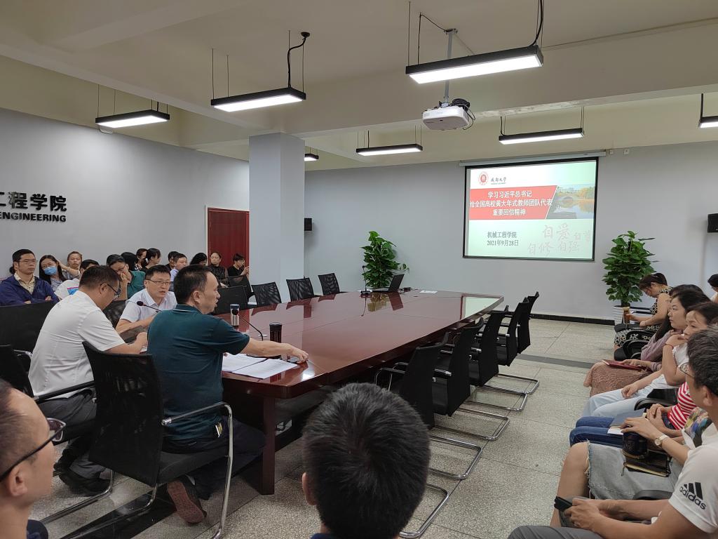 会上,学院党委书记王仕平领学了习近平总书记给全国高校黄大年式教师团队代表重要回信精神。黄大年同志立足本职岗位,凝聚团队力量,在教书育人、科研创新等方面取得了可喜成绩。王仕平强调,黄大年心有大我、至诚报国的爱国情怀,教书育人、敢为人先的敬业精神,淡泊名利、甘于奉献的高尚情操都值得我们好好学习。