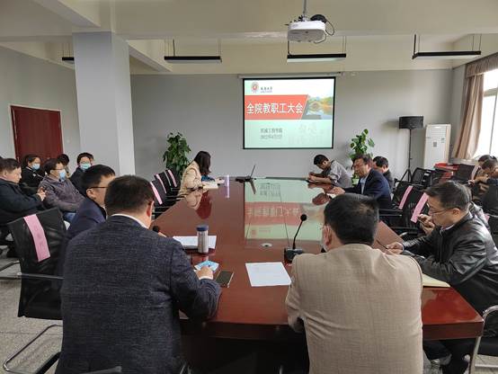 在M301会议室召开全院教职工大会,会议由学院院长冯威主持。会议开展了政治理论学习、警示教育、并作了学院工作汇报和近期重点工作安排等,全院教职工参加会议。