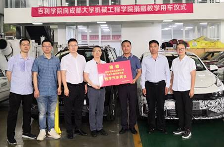 捐赠教学汽车两台”的捐赠仪式。吉利学院资产管理处处长杨昆呈、汽车工程实训中心徐道发、91视频