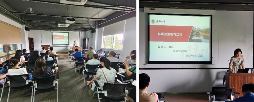 为加强教师科研诚信建设,营造和谐健康的科研氛围,防范和杜绝科研工作中存在的学术不端、作风不实等违背科研诚信的苗头性、倾向性问题,5月30日中午,机电工程系在机械楼M501开展科研诚信教育活动。