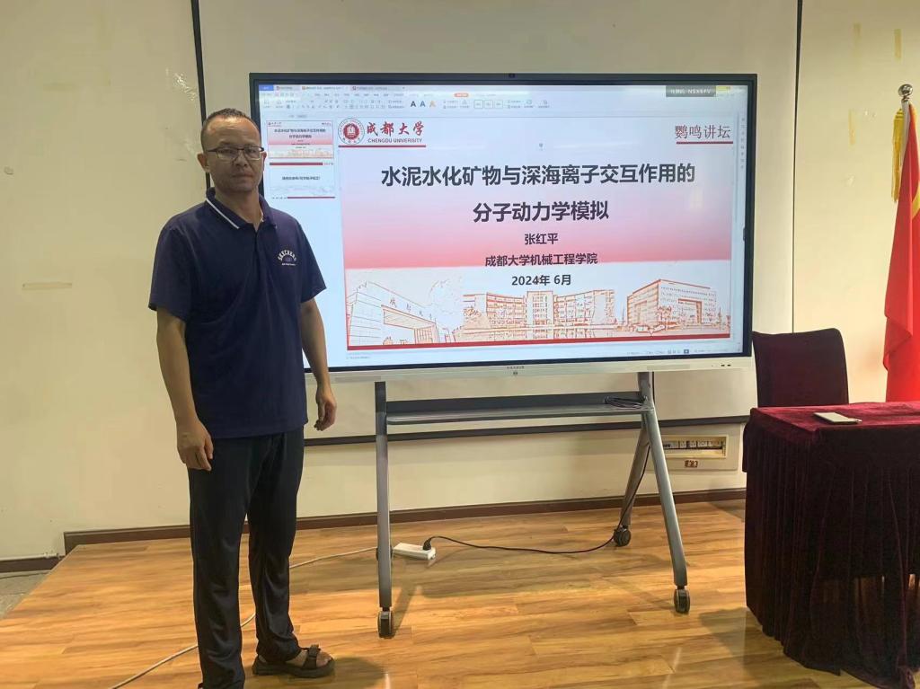 张红平研究员在机械楼M308开展了题为“水泥水化矿物与深海离子交互作用的分子动力学模拟”的成大讲坛讲座。讲座由91视频