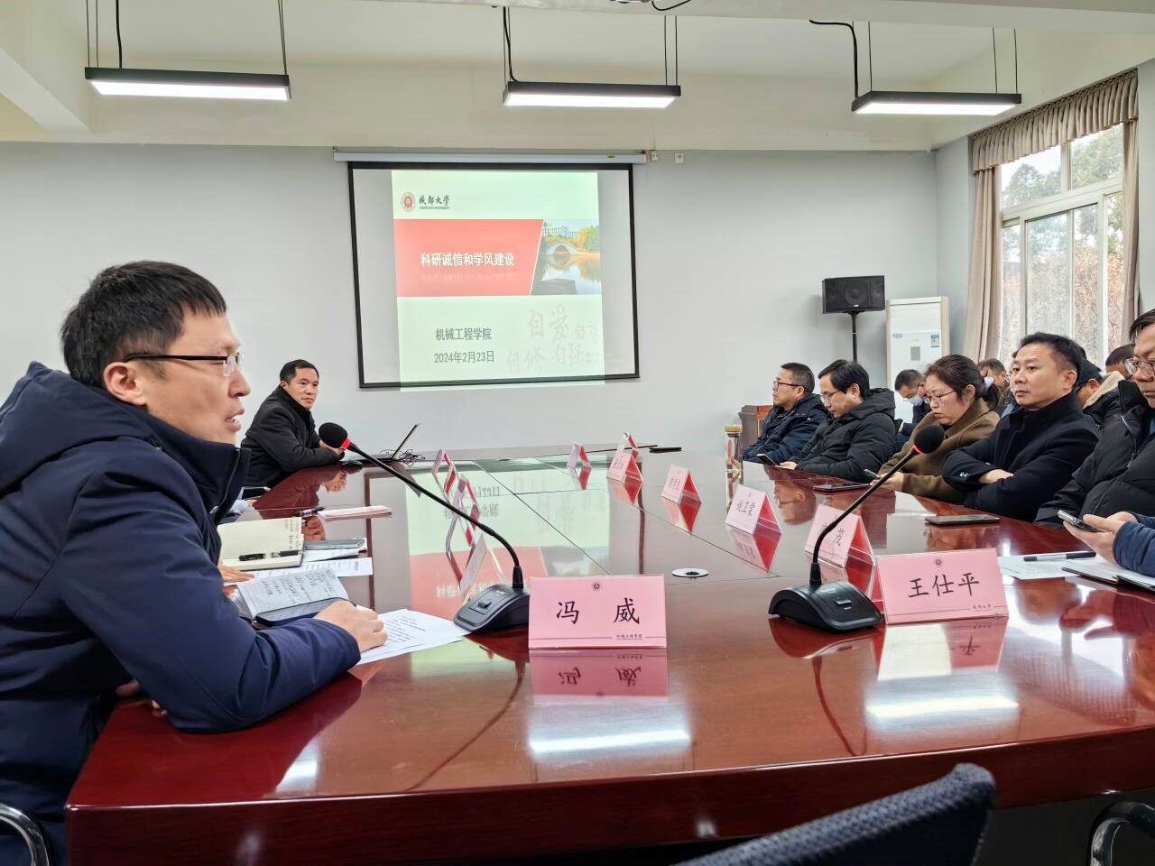 在全院教职工大会上组织开展了科研诚信学习活动。会议在机械楼M301召开,副院长任振兴主持会议。任振兴重点强调了科研诚信对学科、学院、学校发展的重要性。科研与平台管理办公室主任王小炼引导大家学习了科研诚信的相关政策文件和教育视频,主要包括科研诚信和学术不端的定义和重要性、科研诚信的原则、学术不端的类型以及一些典型案例等。全院教职工围绕学习材料和视频进行了讨论。