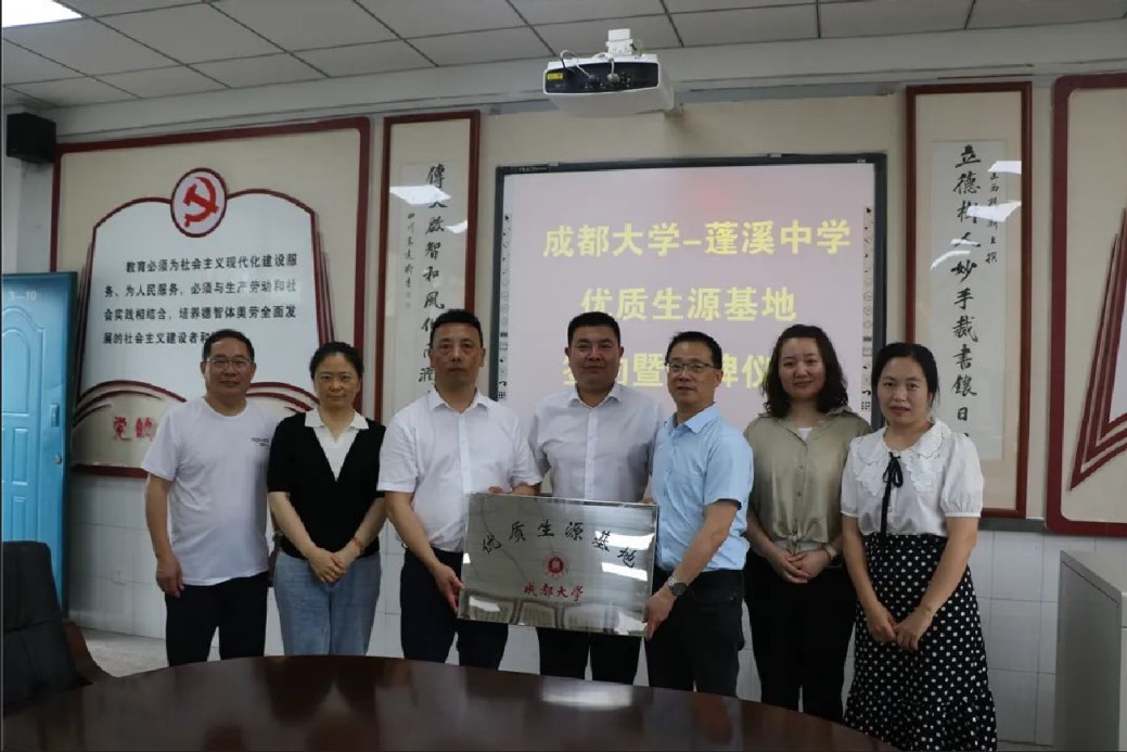 把蓬溪中学作为“优质生源基地”是对蓬溪中学办学理念、育人方式、教育教学质量的极大认可和肯定。蓬溪中学将持续优化培养模式与成才路径,为学生成才创造更好的环境和条件。随后,双方签署了《优质生源基地合作书》,并授牌。
