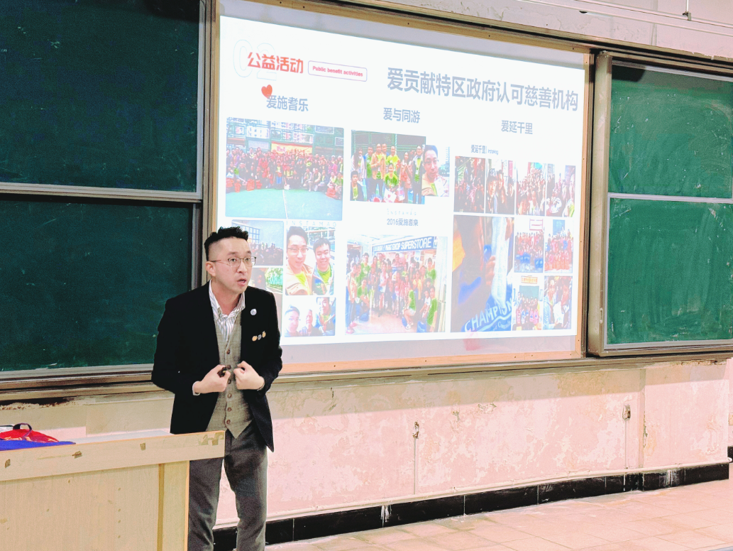 讲座在热烈的掌声中拉开帷幕。文老师以自己独特的“双城记”人生为主线,生动讲述了从香港士官到成都创业导师的华丽转身。他不仅分享了在日本留学时的生活工作经验、在香港社会福利署担任杰出义工期间所积淀的公益精神与社会责任感,还细致剖析了从日本留学到香港工作再到成都创业的跨界心路历程,强调了在不同文化背景下积累的视野与韧性如何成为他创业路上的宝贵财富。同时,文老师也分享了自己在香港和四川的志愿服务经历,分享自己在志愿活动的成长与收获,呼吁同学们积极参与社会志愿活动,在活动中汲取正能量,对社会做出贡献。