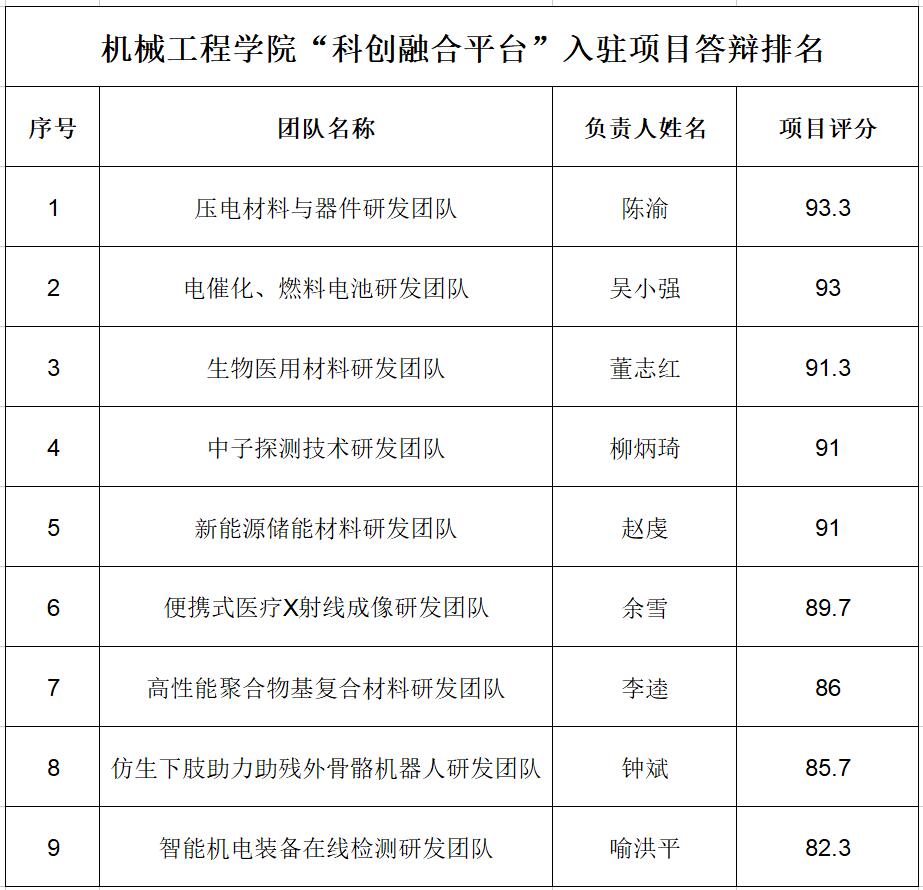“科创融合”平台招募科创团队入驻的通知》要求,经团队自主申报、项目答辩和专家评审等程序,决定招募9个科研团队,平台将按照入驻的规则将为前5名每个团队提供8个固定工位的使用权、配套设施。获批入驻团队中的“中子探测技术研发团队(柳炳琦)”自愿放弃入驻。为了进一步提高科研团队项目转化的积极性,经过学院研究决定,平台剩余工位将为6-9名的每个科研团队提供4个固定工位的使用权,入驻团队名单公示如下: